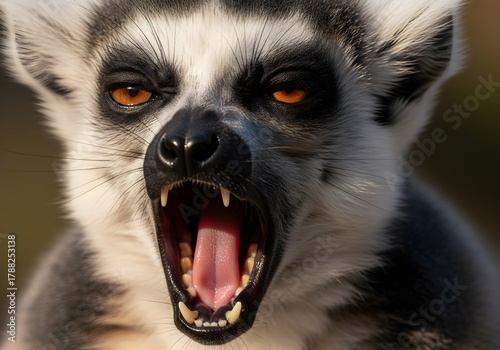 Obraz premium Portrait of a cute ring-tailed lemur, Lemur catta, with striking eyes and a...