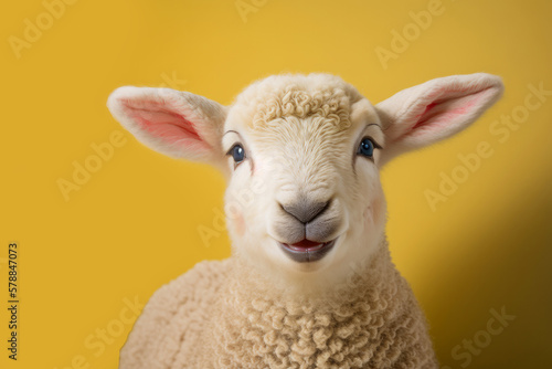 Obraz premium Portrait of a cute spring lamb. Studio shot against a bright background. Generative ai