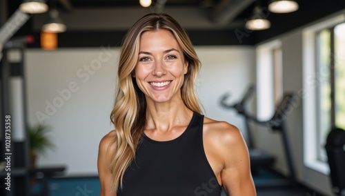 Fototapeta premium Portrait of a determined female fitness trainer with radiant smile