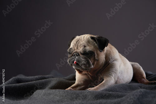 Obraz premium portrait of a disabled dog. special Pug on a light background