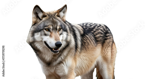 Fototapeta premium Portrait of a distinguished wolf with striking amber eyes and a patterned...