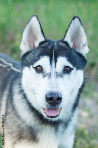 © MaksimM, Obraz premium Portrait of a dog husky breed outdoors