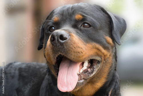 Fototapeta premium Portrait of a dog, Rottweiler breed, close-up