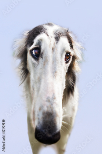 Fototapeta premium Portrait of a dog, Russian Greyhound, black and white.