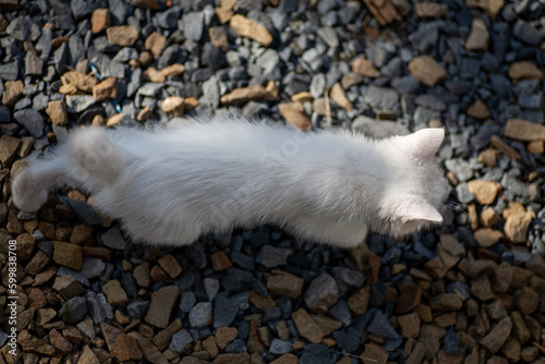 © mironovm, Fototapeta premium Portrait of a domestic cat of white color with big eyes. Cute clean cat. White cat with a pink nose. White Russian breed of cats.