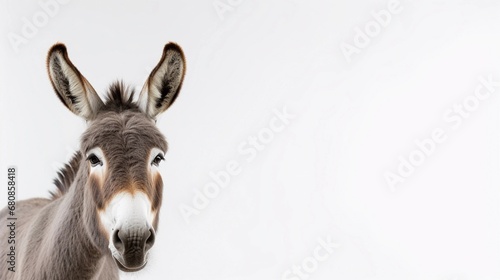 Obraz premium Portrait of a Donkey against white background with space for text, AI generated, background image
