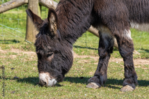 © Ian, Fototapeta premium Portrait of a Donkey Feeding on Grass