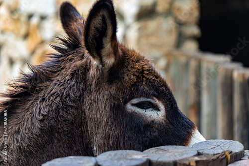 Fototapeta premium portrait of a donkey on a farm very close-up