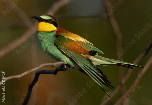 Obraz premium Portrait of a European bee-eater perched on a tree, Bahrain
