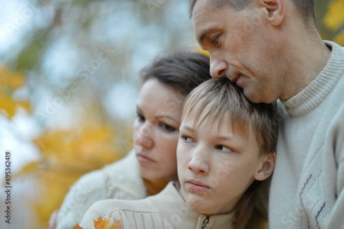 © aletia2011, Obraz premium Portrait of a family of three on the nature