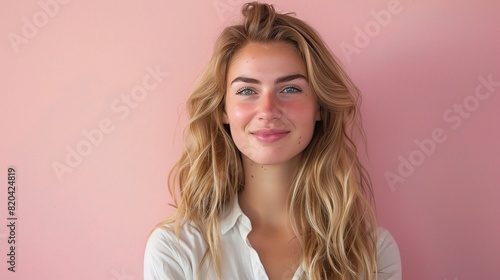 © WS Studio 1985, Fototapeta premium portrait of a female entrepreneur exuding confidence and happiness in a studio environment, isolated against a white background
