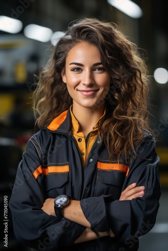 © Adobe Contributor, Fototapeta premium Portrait of a female mechanic smiling
