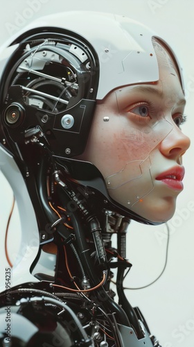 © Christiankhs, Fototapeta premium Portrait of a female robot. Futuristic artificial intelligence concept.