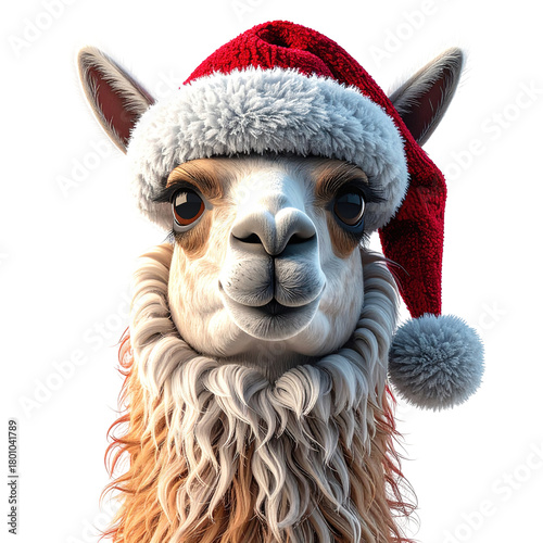 © Mori Deci, Naklejka premium Portrait of a festive mammal wearing a traditional seasonal hat, clipart, isolated on a transparent background.