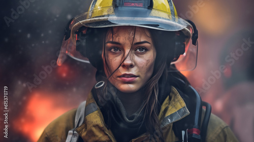© PHdJ, Fototapeta premium portrait of a firefighter, generative ai