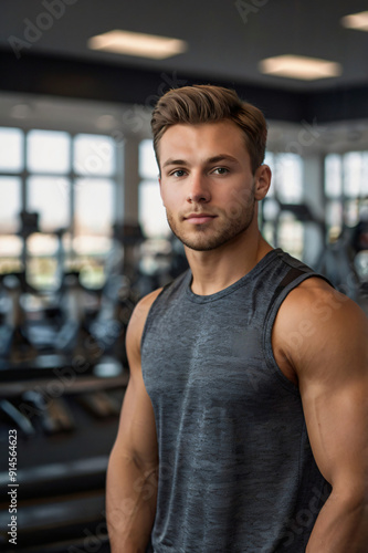 © Luluraschi, Fototapeta premium portrait of a fit caucasian male fitness instructor in a gym