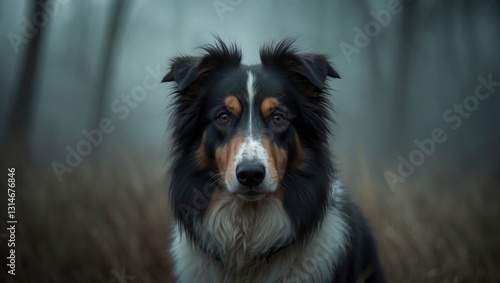 Fototapeta premium Portrait of a fluffy collie-type working dog showing head and shoulders.