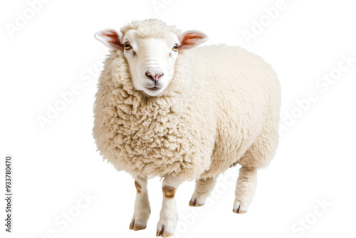 © Rattanathip, Obraz premium Portrait of a fluffy white sheep standing isolated on a transparent background. showcasing its woolly coat and innocent expression.