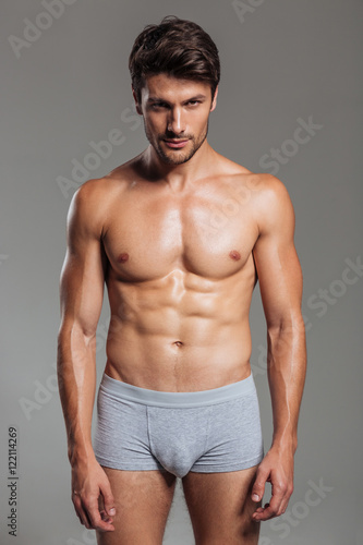 © Drobot Dean, Fototapeta premium Portrait of a focused handsome muscular man in underwear standing