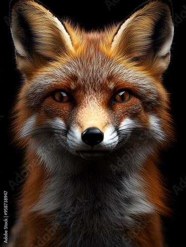 © anurakss, Fototapeta premium portrait of a fox front face on dark background
