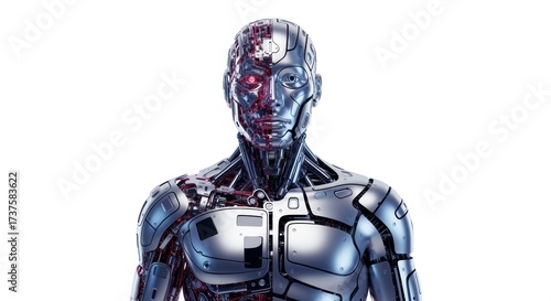 © ANDIIKRAM, Naklejka premium Portrait of a Futuristic Android with Exposed Mechanics