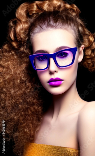 © Mike Uteshev, Fototapeta premium Portrait of a girl with creative makeup and hairstyle. Illustration. Generated by Artificial Intelligence.