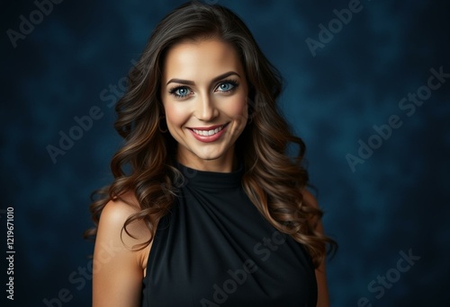 © iushakovsky, Fototapeta premium Portrait of a glamorous woman in a dark blue studio