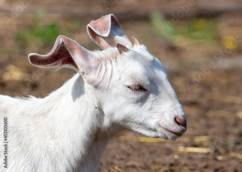 © schankz, Obraz premium Portrait of a goat on the farm.