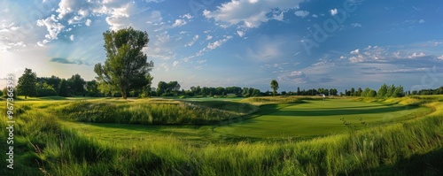 © Hanasta, Obraz premium portrait of a golf course from the ball's perspective