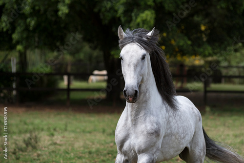 © Nicole Ciscato, Obraz premium Portrait of a gray lusitano stallion