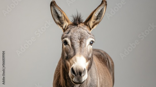 © VirtualVista, Naklejka premium Portrait of a gray mule against a neutral studio background showcasing its expressive features and serene demeanor