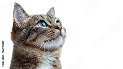 © kaa, Fototapeta premium Portrait Of A Gray Tabby Cat With Striking Blue Eyes Looking Upw