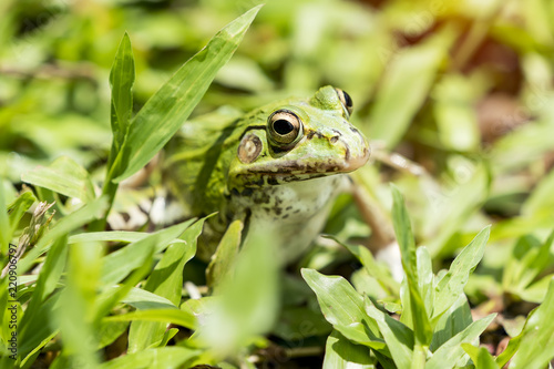 © xiaoliangge, Fototapeta premium portrait of a green frog in the grass
