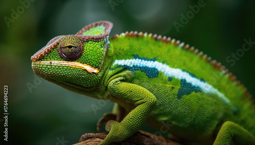 © TheWaterMeloonProjec, Fototapeta premium Portrait of a green veiled chameleon in its natural tropical habitat