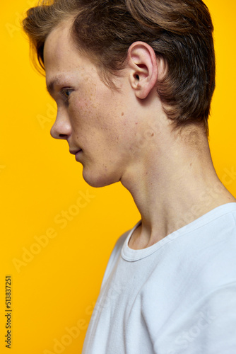 © Tatiana, Fototapeta premium portrait of a guy with freckles standing sideways to the camera