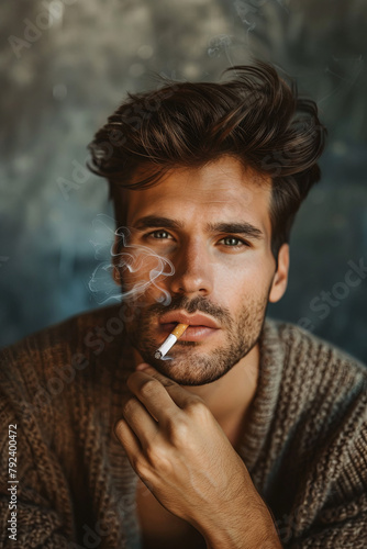 © Emanuel, Fototapeta premium Portrait of a handsome man indulging in a cigarette