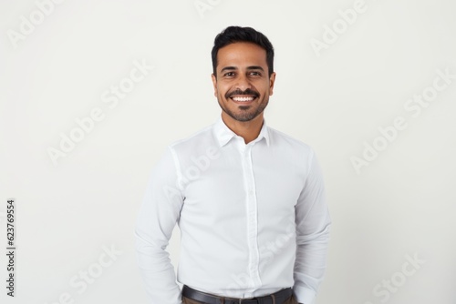 © Robert MEYNER, Fototapeta premium Portrait of a handsome young indian man smiling at camera over white background