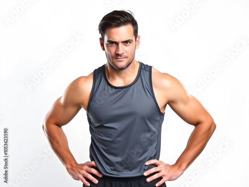 Fototapeta premium Portrait of a handsome young man with arms akimbo on white background