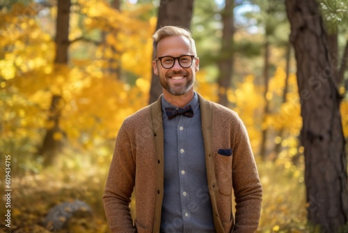 Obraz premium Portrait of a handsome young man with glasses in the autumn forest