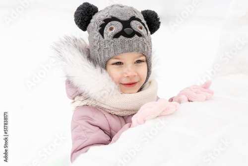 © Елена Гурова, Obraz premium portrait of a happy child on a winter snowy day