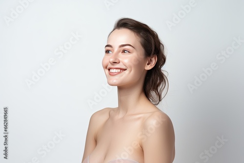 Obraz premium Portrait of a happy, confident, and healthy Caucasian woman with glowing skin and positivity. Generative AI