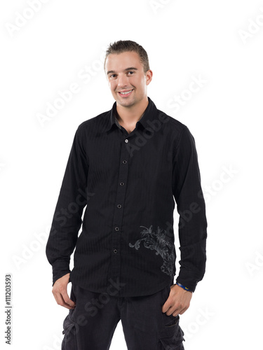 © Dan Kosmayer, Fototapeta premium portrait of a happy young man posing against white.