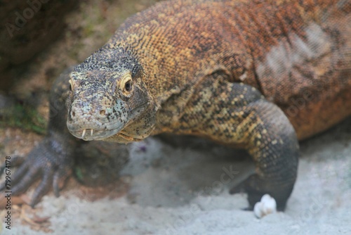 Obraz premium portrait of a komodo basking and looking at the camera