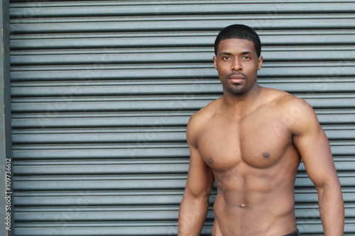 © ajr_images, Naklejka premium Portrait of a lean toned and ripped muscle fitness man under soft lighting with copy space.