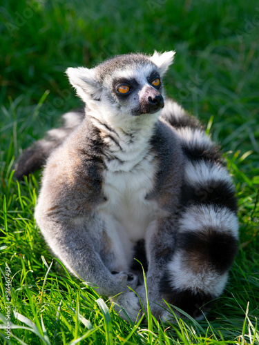 © fotomaster, Fototapeta premium portrait of a lemur on a green background