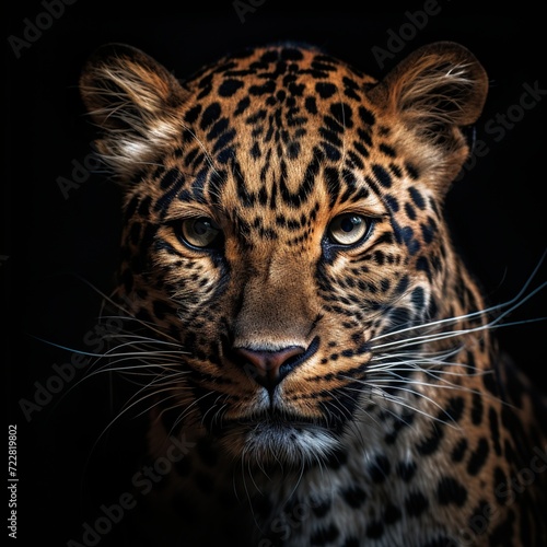 Fototapeta premium Portrait of a leopard on a black background. Studio shot.