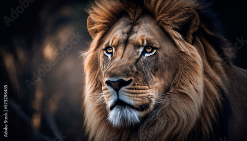 © ShaRiq, Naklejka premium portrait of a lion close up Generative AI