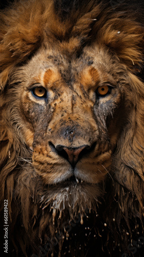 Fototapeta premium Portrait of a lion in the wild, close-up.