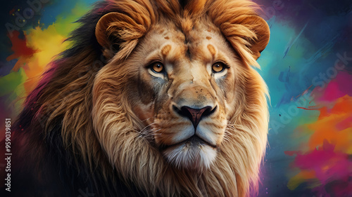 Fototapeta premium portrait of a lion on colorful vibrant background