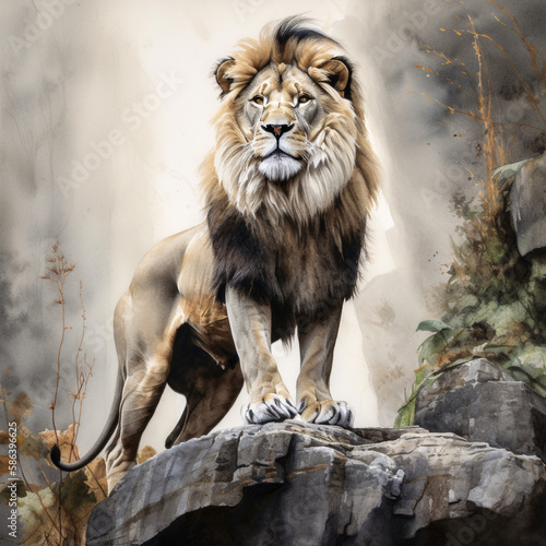 © Eyestetix Studio, Naklejka premium Portrait of a lion on the rock illustration